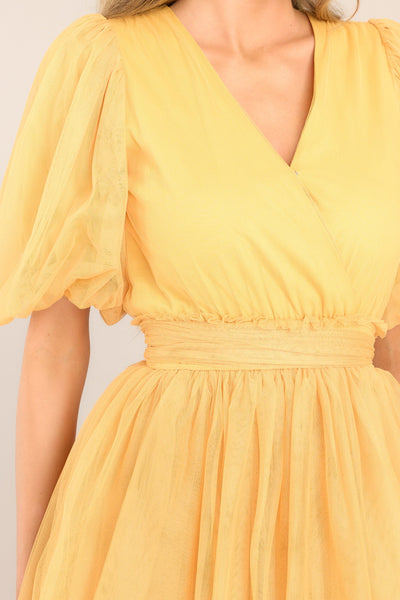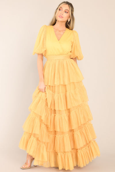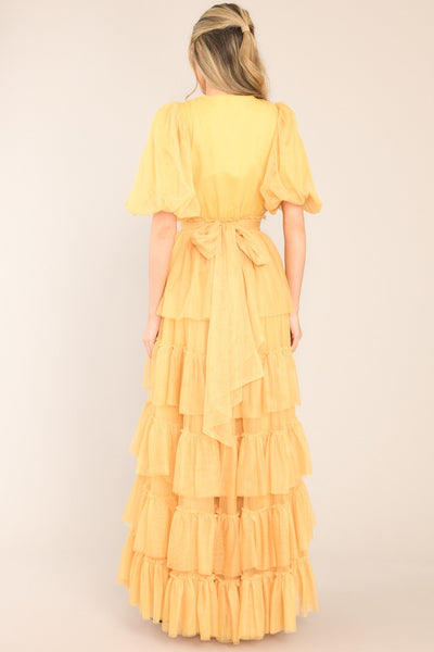 Say goodbye to blah and hello to bliss in this A Beautiful Feeling Yellow Maxi Dress! The gorgeous yellow hue is guaranteed to cheer up your look, while the short-sleeved design will keep you comfortable and confident all day long. Whether you’re headed out todinner or an evening event, this maxi will keep you looking and feeling your best! This dress features a v-neckline, puff sleeves, elastic stretch around the waist, a removable self-tie at the waist, and a tiered flowy skirt.
