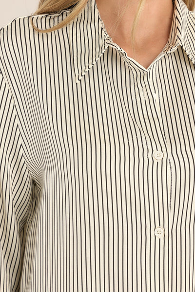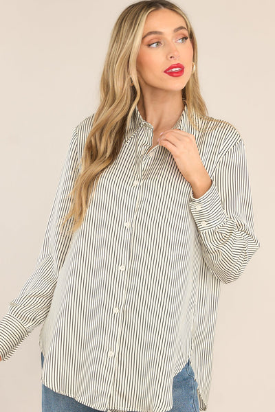 Get ready to come to your senses and fall in love with this white and black stripe top. Its classic design and comfortable fit will make it a staple in your wardrobe, perfect for any occasion. So go ahead, add it to your cart and come to your stylish senses!