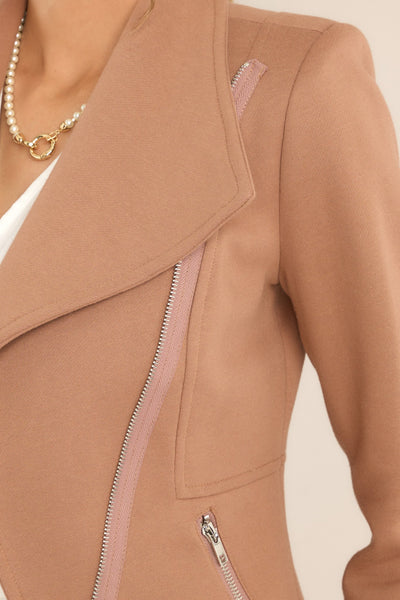 Get ready to rev up your style with the For All Mocha Moto Jacket! This canvas style jacket features shoulder pads for a sophisticated look, while keeping you comfortable. Upgrade your wardrobe with this must-have piece.
