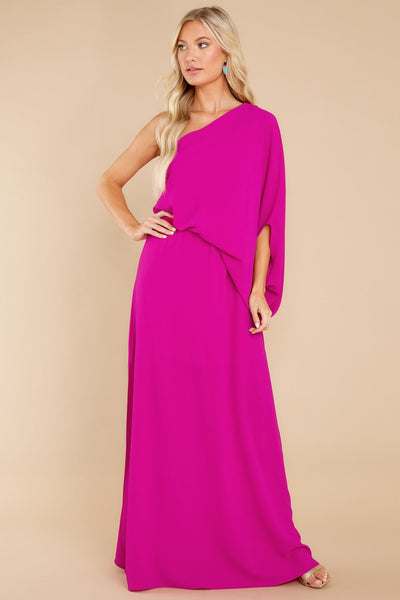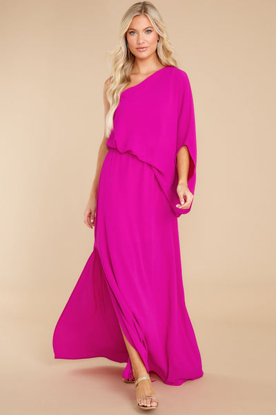 We won't blame you, if you Get Obsessed with this fuchsia maxi! Honestly, we share in your over the moon feeling...when we see you looking so elegant and gorgeous in this off the shoulder dress! This dress features an off the shoulder neckline, large dolman sleeve, an elastic waistline, and an elegant side slit. Model is wearing a small. 100% Polyester Hand Wash Cold Lined Made in the USA