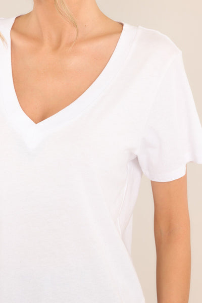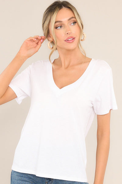 Keep your sweetheart under your spell, even when you're making the most classic fashion statement! Slip on this Girlfriend White V-Neck Tee with your favorite denim and experience what timeless perfection looks like!This top features a v-neckline, short sleeves, and a lightweight fabric. Model is wearing an x-small. 100% Cotton Machine Wash Cold Unlined Imported