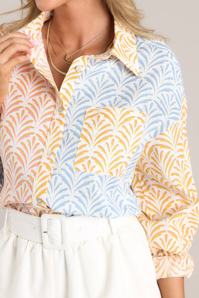 Feel the need to chill? Our Need To Chill Multi Print Top has you covered, literally! Show off your chill vibes with this colorful and comfortable piece. This top features a collared neckline, functional buttons down the front, a functional pocket at the bust, long sleeves with buttoned cuffs, and a scoop bottom hem.