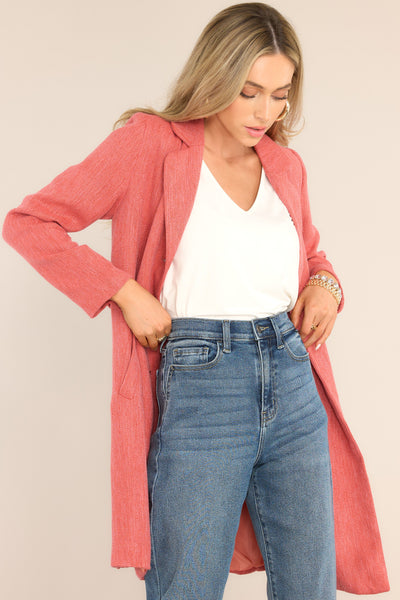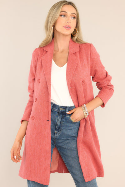 Start the day On A High Note, in this polished porcelain rose coat! Seeing you in this sophisticated button down coat with the self-tie belt, inspires me to seize the day like you!