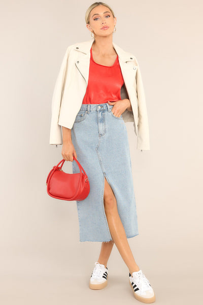 Let the good times roll and make sure you're rocking this Trina Ecru Moto Jacket when it's time for your best moments! Stylethis double collar beauty with your favorite jeans and you will create aniconiclook that will keep heads turningall day long! This moto jacket features a double collar with a v-neckline, an asymmetrical zipper closure, two functional waist pockets, and quarter length zipper cuffs.