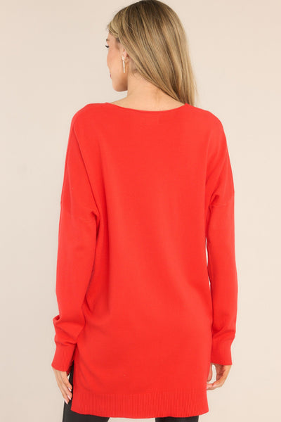 Take a moment away from your hectic schedule and Wind Down in this bright red sweater! You may feel as if you're taking a long break in this soft v-neck sweater...but you areactuallyworking overtime in thisstylish casual top! This essential sweater features a v-neck and a high low hemline.